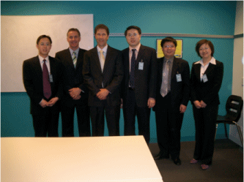 從左至右分別為華夏銀行工程師雷宏、GENESYS主管、澳新銀行客戶服務中心項目管理與運營經(jīng)理Allan Hopson,華夏銀行網(wǎng)絡銀行部總經(jīng)理黎清、華夏銀行個人業(yè)務部副總經(jīng)理宋曉波、華夏銀行客戶服務中心經(jīng)理彭凌