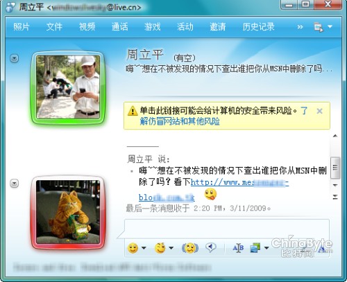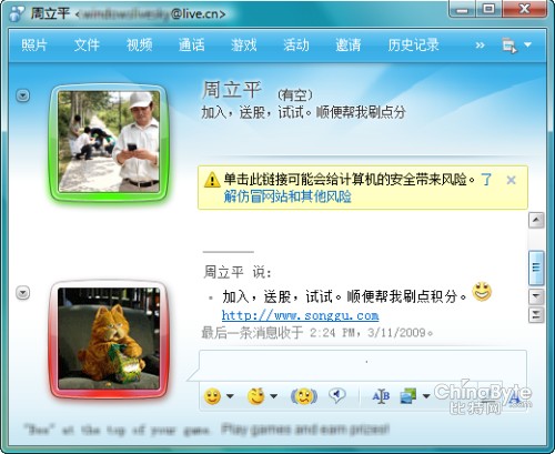 通常來說,用戶成為垃圾信息的目標(biāo)主要源于用戶泄露賬戶信息。一些未經(jīng)微軟認(rèn)證的第三方網(wǎng)站在會員注冊程序中為盜取用戶MSN賬號及密碼設(shè)下一個圈套,即要求注冊者提交MSN賬號和密碼。網(wǎng)站獲取到MSN用戶賬號和密碼后,通過架設(shè)的“機(jī)器人”服務(wù)器(即一種惡意程序,可通過自動勘測方式,獲取用戶賬號密碼),自動登錄該用戶Messenger,并按好友名單自動傳播垃圾信息鏈接。一旦用戶以為是好友發(fā)送的,點擊這個鏈接后,自己的電腦也會感染,會再繼續(xù)自動向其他好友發(fā)送同樣的廣告信息鏈接,就這樣,呈幾何級數(shù)進(jìn)行傳播。
