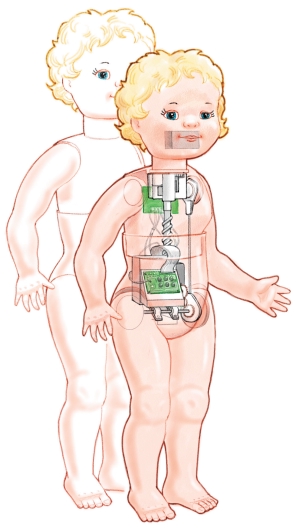 從機(jī)械上來(lái)說(shuō),夢(mèng)想娃娃只是件簡(jiǎn)單的藝術(shù)品。里面有三個(gè)馬達(dá):一個(gè)用來(lái)走路,一個(gè)用來(lái)成長(zhǎng),一個(gè)用來(lái)動(dòng)嘴。爬行和走路是由古怪的凸輪完成的。凸輪向玩具的某邊傾斜的時(shí)候玩具另一邊的手和腳就會(huì)向前移動(dòng)。然后凸輪又向另一邊傾斜,這邊的手腳又向前移動(dòng),這樣,玩具就能夠爬行和走路了。