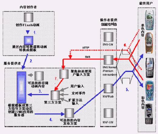 通過目前的2/2.5G網(wǎng)絡(luò)傳輸,運(yùn)行Flash動(dòng)畫轉(zhuǎn)換成的應(yīng)用程序不需要在手機(jī)上安裝特別的播放器軟件,只需要支持Java技術(shù)。 該方案可以用現(xiàn)有的網(wǎng)絡(luò)和J2ME設(shè)備,使用戶提前進(jìn)入多彩的無線世界,給用戶一個(gè)新的選擇。