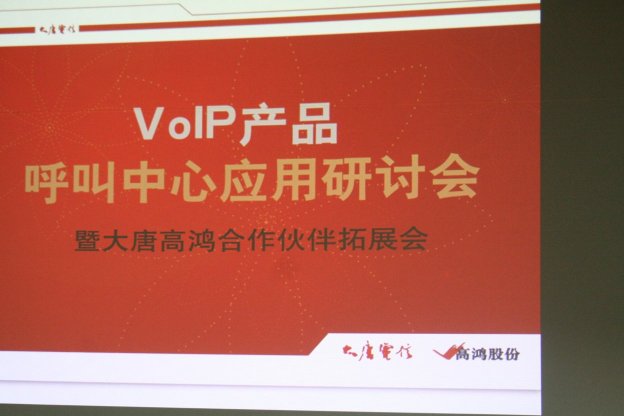 2006年9月8日,由中國VoIP業(yè)界的引領(lǐng)者大唐高鴻數(shù)據(jù)網(wǎng)絡(luò)技術(shù)股份有限公司(股票簡稱:高鴻股份;股票代碼:000851)主辦的大唐高鴻VoIP產(chǎn)品呼叫中心應(yīng)用研討會在北京大唐電信集團(tuán)主樓隆重舉行,此次會議由CTI論壇協(xié)辦。這是會議是大唐高鴻攜其VoIP產(chǎn)品進(jìn)軍呼叫中心領(lǐng)域的里程碑。參加會議的代表來自虛擬運營商、VoIP公司、呼叫中心公司,企業(yè)行業(yè)客戶以及知名媒體共120余人,大唐高鴻還向會議代表介紹了其VoIP產(chǎn)品與呼叫中心廠商的合作計劃,預(yù)示著大唐高鴻正式向全國展開VoIP產(chǎn)品在呼叫中心行業(yè)中的應(yīng)用的市場攻勢。
