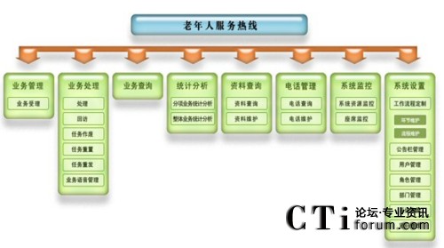 老年人服務(wù)熱線系統(tǒng)是為老年人提供援助服務(wù)的電話呼叫平臺,利用統(tǒng)一的特服號碼接入,實現(xiàn)統(tǒng)一服務(wù)流程和服務(wù)標(biāo)準(zhǔn),服務(wù)內(nèi)容包括咨詢服務(wù)、求助報警服務(wù)、預(yù)定服務(wù)(預(yù)定生活服務(wù)、新聞送達、導(dǎo)引服務(wù))、老年人定位導(dǎo)向服務(wù)、語音讀報服務(wù)等等。老年人服務(wù)熱線系統(tǒng)將通過呼叫中心、手機短信息等多種接入手段相結(jié)合的方式向廣大老年人提供7×24小時服務(wù)。即:工作時間實現(xiàn)人工座席及自動語音受理;非工作時間實現(xiàn)自動語音受理及值班座席受理。