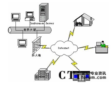 視頻會(huì)議服務(wù)器設(shè)置在上?偛浚ㄟ^電信的6M帶寬接入互聯(lián)網(wǎng),并配備有廣域網(wǎng)靜態(tài)IP地址。下屬生產(chǎn)基地和分支機(jī)構(gòu)通過電信ADSL接入和光纖接入等方式接入互聯(lián)網(wǎng)。這些點(diǎn)能夠?qū)崿F(xiàn)網(wǎng)絡(luò)視頻會(huì)議通訊,進(jìn)行音頻、視頻和數(shù)據(jù)的多方溝通。