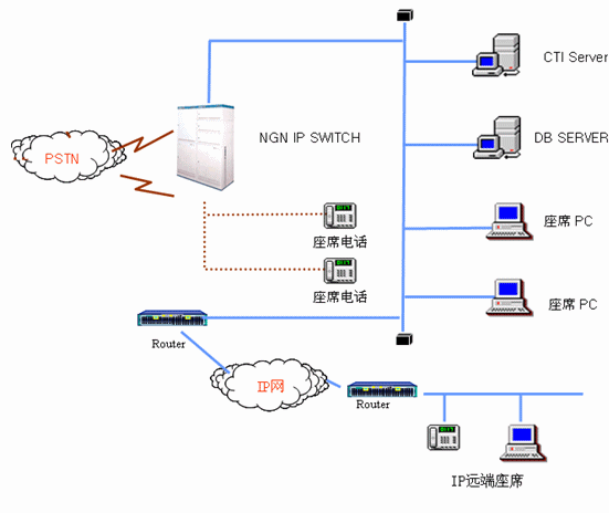 HXD IP Switch實現(xiàn)的呼叫中心功能: