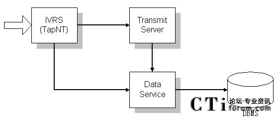 后臺(tái)程序使用Data Service 作為數(shù)據(jù)庫中間插件,TapNt(IVR)負(fù)責(zé)運(yùn)行流程。TapNt(IVR)查詢數(shù)據(jù)要通過Data Service來進(jìn)行。這項(xiàng)設(shè)置的目的在于使數(shù)據(jù)插件得到充分利用。當(dāng)話務(wù)量增多時(shí),可以多開幾個(gè)Data