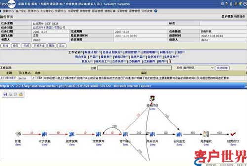 對于復雜的任務,TurboCRM系統(tǒng)提供了流程定制功能,不僅可以定制靈活流程,也可定制固定流程,將公司的業(yè)務流程固化在系統(tǒng)中,以指導員工按流程辦事。
