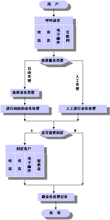 用戶可以通過電話、E-Mail、Web等多種手段來完成電力報修、電費催繳、電費代繳(銀行和供電局的自動轉(zhuǎn)賬業(yè)務(wù))等各種電力日常業(yè)務(wù)?蛻粼谔岢錾暾堃欢ǖ臅r間內(nèi)會收到受理部門的電話或E-Mail回復(fù)。