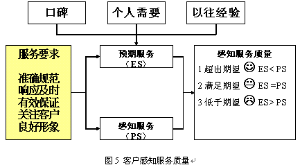 。。了解到制度規(guī)范的范圍,籌備人員有可能還是感覺到迷茫,這些規(guī)定要怎么制定呢?可以修改公司原來的資料,也可能是想到哪里寫到哪里。在這里,筆者的建議是從兩個方面去思考。第一是客戶方面,先要了解到客戶的需要和感知。下圖可以說明客戶是如何感受到優(yōu)質(zhì)服務的。