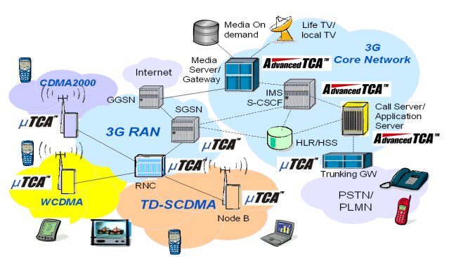3G網(wǎng)絡(luò)中占主要地位的三個(gè)無線接入標(biāo)準(zhǔn)是WCDMA、TD-SCDMA與CDMA2000。3GPP與業(yè)界廠商對網(wǎng)絡(luò)結(jié)構(gòu)的標(biāo)準(zhǔn)化做出的杰出努力,為在世界范圍內(nèi)成功布署3G網(wǎng)絡(luò)業(yè)務(wù)起到了至關(guān)重要的作用。不過,3G網(wǎng)絡(luò)是復(fù)雜的系統(tǒng),包含有多種多樣的網(wǎng)元設(shè)備,AdvancedTCA與MicroTCA技術(shù)的出現(xiàn)把它的實(shí)現(xiàn)方式引向了標(biāo)準(zhǔn)化的道路,即通過商用組件快速、低成本地布署3G網(wǎng)絡(luò),減少了各種獨(dú)立的實(shí)現(xiàn)方式的復(fù)雜性,提高了互操作性。