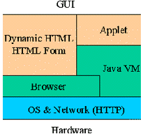 Dynamic HTML可以很好地進行公開信息的發(fā)布,通過HTML Form機制可以從瀏覽器中得到用戶檢索等簡單操作的輸入信息。對于無須身份認證、訪問控制的內(nèi)容,在Web Server上可以使用通常的CGI技術(shù)獲取用戶的請求、查詢條件,通過Web Connector還可以使用應(yīng)用服務(wù)其提供的后臺服務(wù),結(jié)果使用HTML方式描述,并可直接回送到客戶端的瀏覽器。如果進一步使用Applet技術(shù),還可以在客戶端實現(xiàn)更為友好的交互式顯示模式。無論是使用DHTML技術(shù)還是HTML Form加上Server方擴展(如CGI, ISAPI, NSAPI, fastCGI和servlet等)。它們適合處理的業(yè)務(wù)都是每次請求/應(yīng)答基本獨立,相互無關(guān)聯(lián)的情況。對于一些更為復(fù)雜的應(yīng)用,要求前后操作具有相關(guān)性,客戶與服務(wù)器端各自保持狀態(tài)的變化且狀態(tài)是相關(guān)的。在這種情形之下,更好的解決方案是將客戶端的所有操作保持在一個Applet中完成,由Applet直接與Web Server交互數(shù)據(jù)來完成請求/應(yīng)答數(shù)據(jù)的交互。